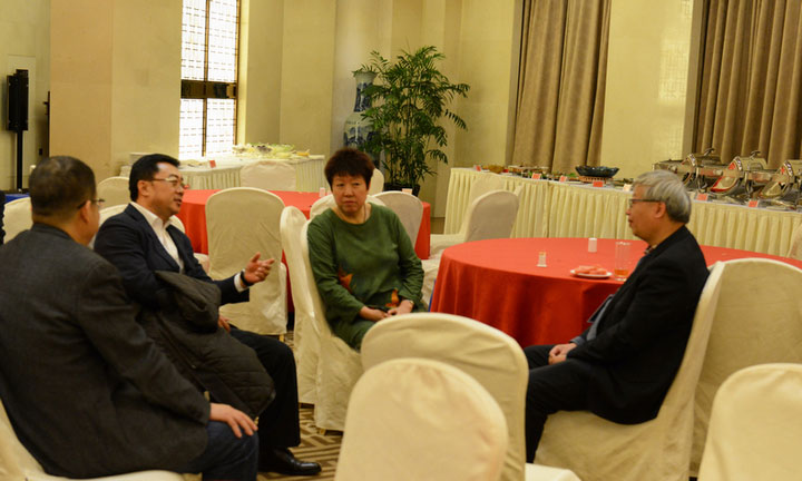 ▲洪長禧會長與杭蕭鋼構(gòu)副總裁、著名專家方鴻強交流