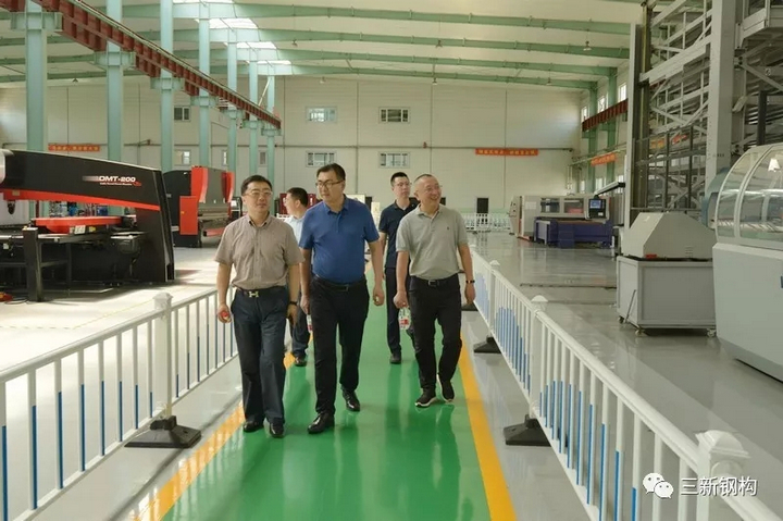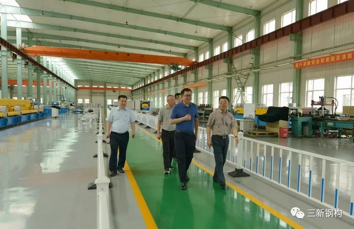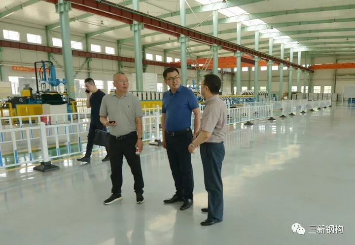 2019年7月3日,盛夏沈城,風和日麗。遼寧省住建廳曹桂喆副廳長、建筑業(yè)改革處王曉偉處長、張慶峰副處長一行來到三新集團調(diào)研。