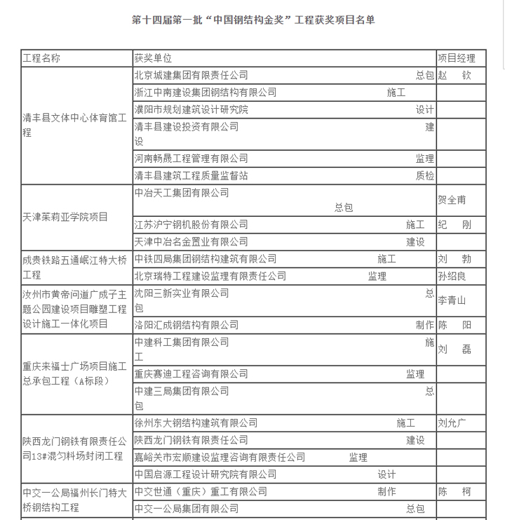 會上,經(jīng)過由23位資深鋼結構專家專家組成的評審委員會嚴格遵循公平、公正、公開的原則,對各項申報工程進行細致而周密的綜合評議和投票,最終產(chǎn)生了第十四屆第一批(2019年度)中國鋼結構金獎工程。 我公司黃帝問道大型城雕項目名列其中,并將在2021年全國建筑鋼結構行業(yè)大會一起進行表彰。