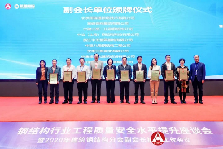 2020年10月17日,由中國建筑金屬結構協(xié)會主辦的“鋼結構行業(yè)工程質量安全水平提升座談會暨2020年建筑鋼結構分會副會長擴大工作會議”在浙江蕭山召開。作為副會長單位和首批國家裝配式建筑產(chǎn)業(yè)基地,三新集團于東云董事長受邀參會并在會上發(fā)表講話。