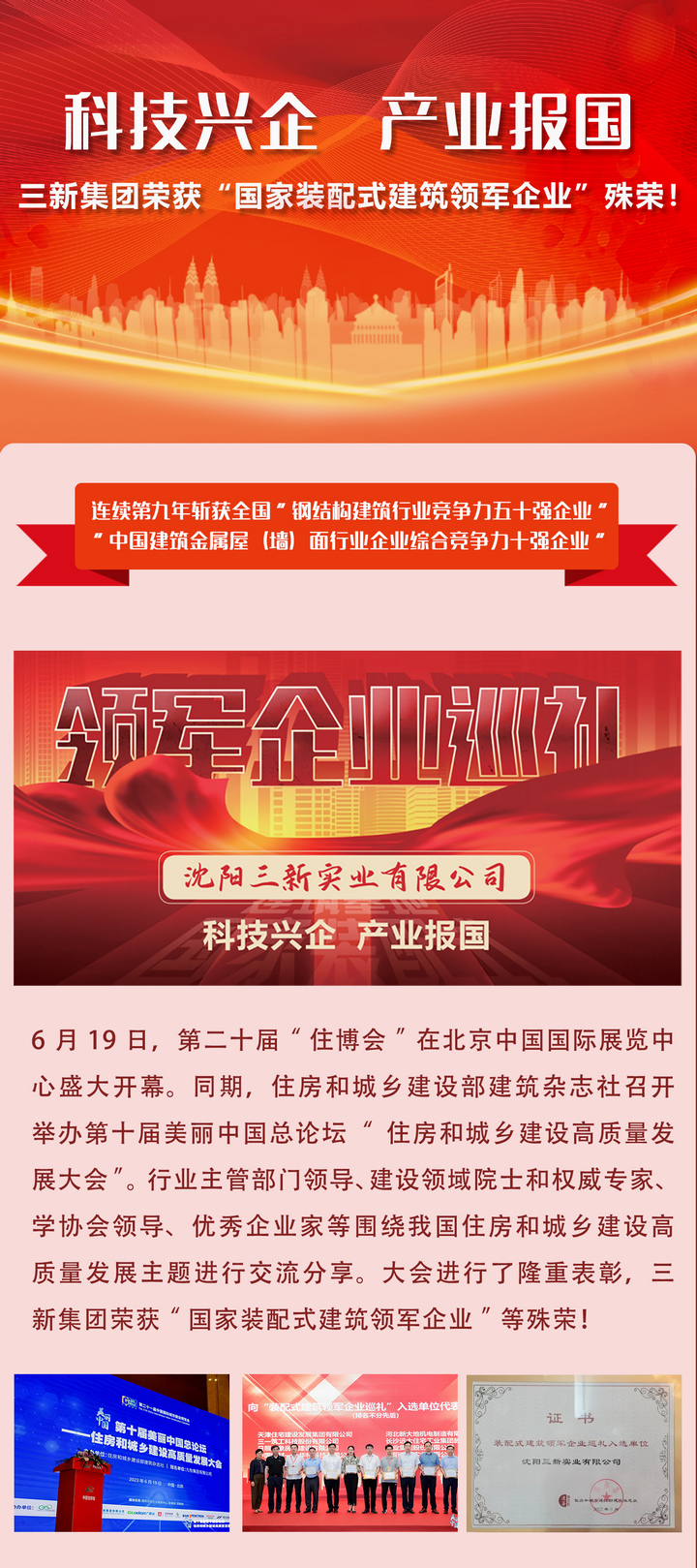 科技興企,產(chǎn)業(yè)報(bào)國(guó)——三新集團(tuán)榮獲“國(guó)家裝配式建筑領(lǐng)軍企業(yè)”殊榮!