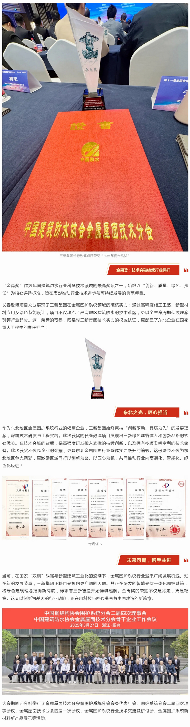 三新集團(tuán)榮膺金禹獎(jiǎng),為東北地區(qū)金屬圍護(hù)行業(yè)添彩!
