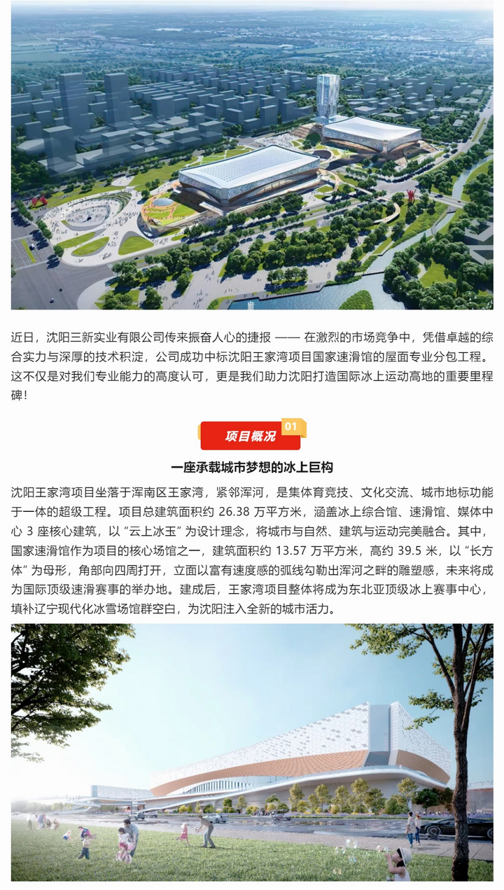 沈陽三新實業(yè)成功中標王家灣冰上運動中心速滑館重點屋面工程,助力第十五屆全國冬季運動會