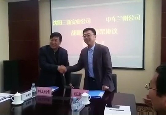 2015年11月12日,經(jīng)過一段時期的合作交流,三新公司與中國中車蘭州機車有限公司正式簽訂戰(zhàn)略合作協(xié)議,啟動深度合作,在鐵路配件制造、建廠等方面形成全方位的合作關(guān)系。雙方希望通過建立密切、長久及融洽的戰(zhàn)略合作伙伴關(guān)系,充分發(fā)揮各自業(yè)務(wù)特點和資源優(yōu)勢,在業(yè)務(wù)捆綁、市場營銷、產(chǎn)業(yè)推動等多個領(lǐng)域開展強強合作,實現(xiàn)資源共享、優(yōu)勢互補,共同促進雙方產(chǎn)品與服務(wù)的延伸和發(fā)展。簽約儀式在蘭州機車有限公司簽訂。該協(xié)議的簽訂是雙方合作共贏的奠基石,翻開了強強聯(lián)合的新篇章,必將為各自的今后發(fā)展增添新的動力和保障。