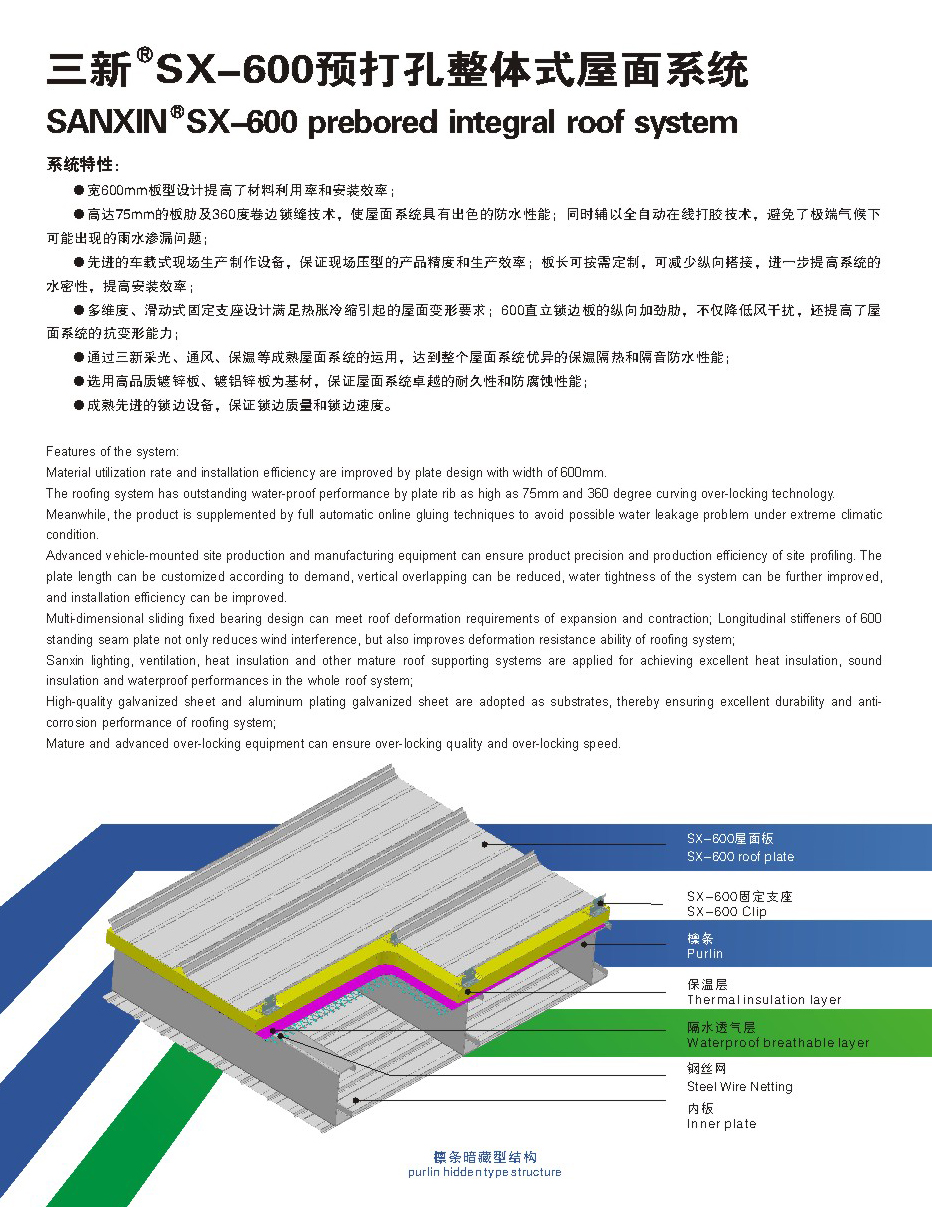 SX-600預(yù)打孔金屬屋面系統(tǒng)