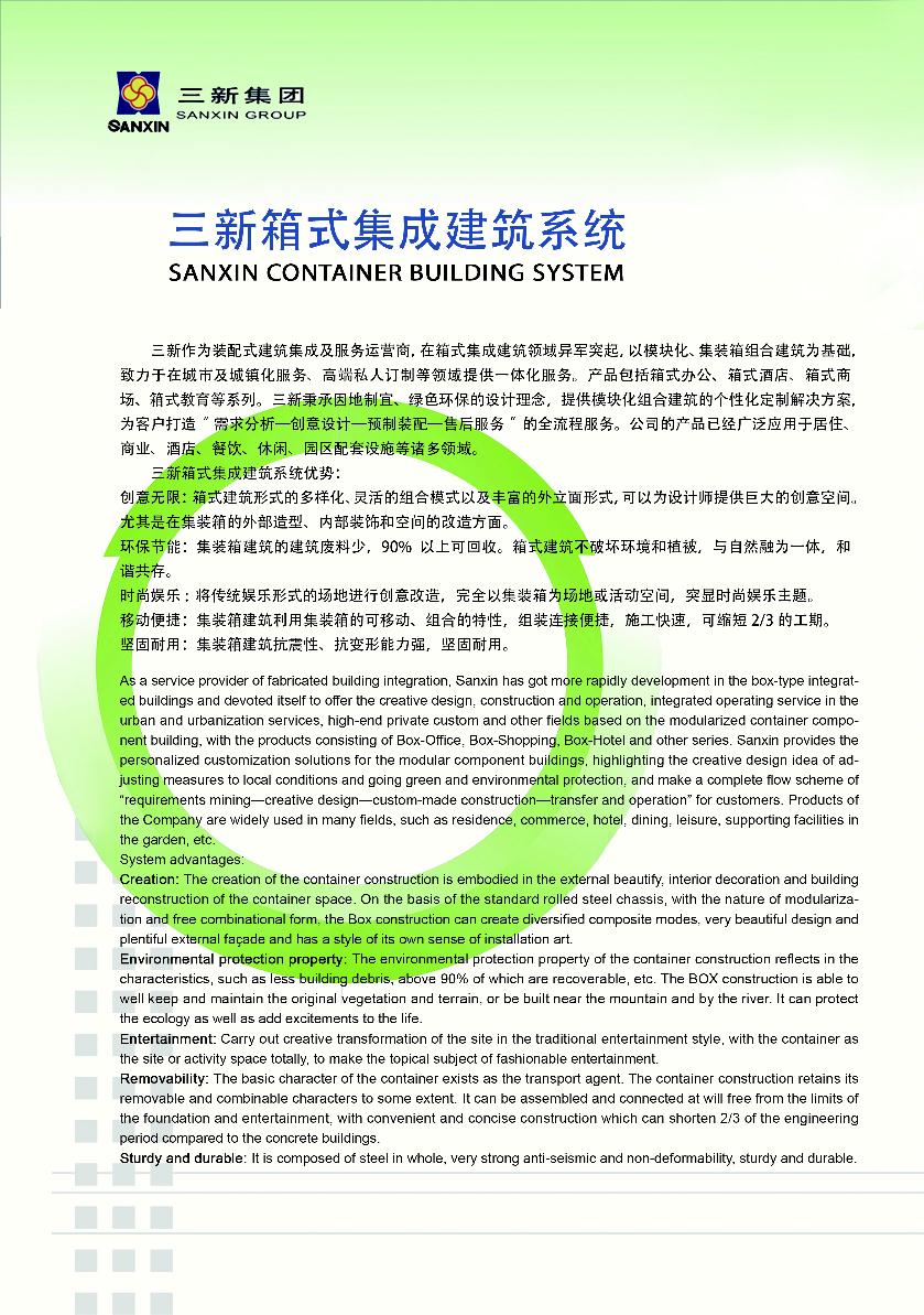 • 三新——綠色建筑領航者。新技術,新工藝,新材料,時尚,環(huán)保,快捷